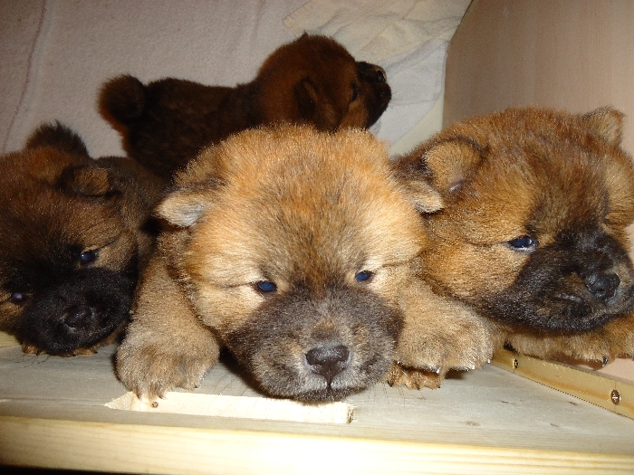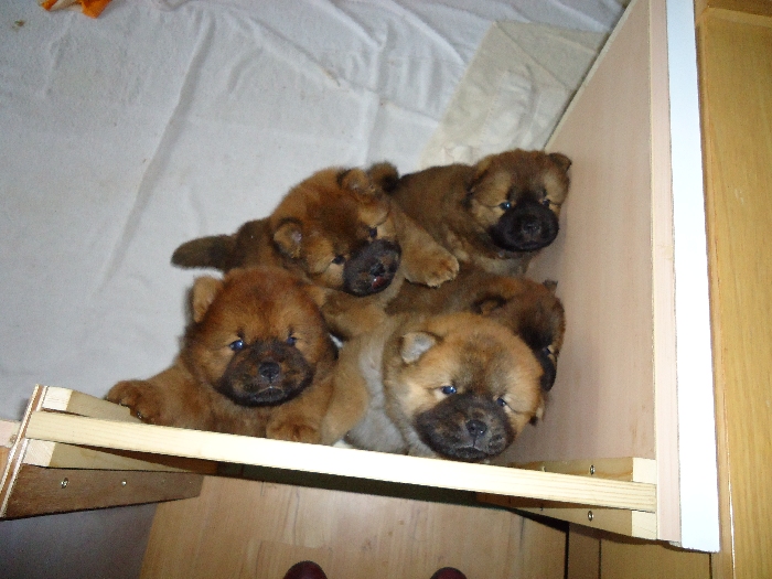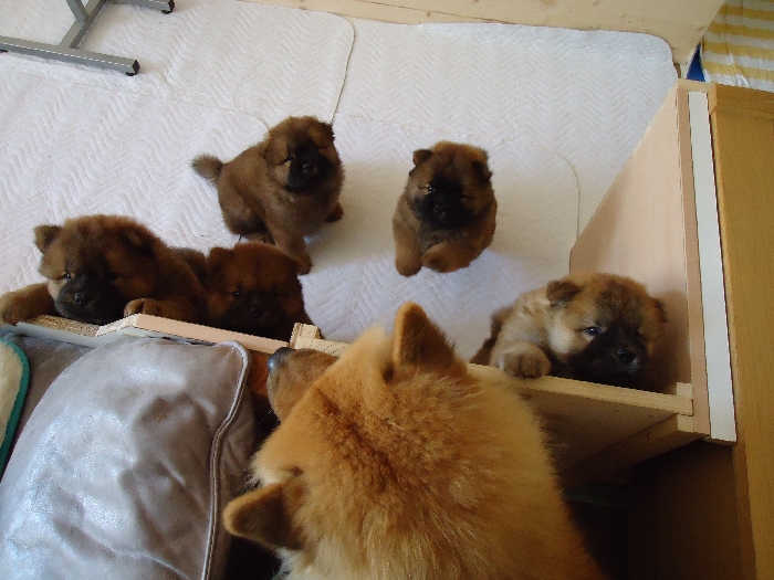 2 Rüden rot, 3 Hündinnen rot
