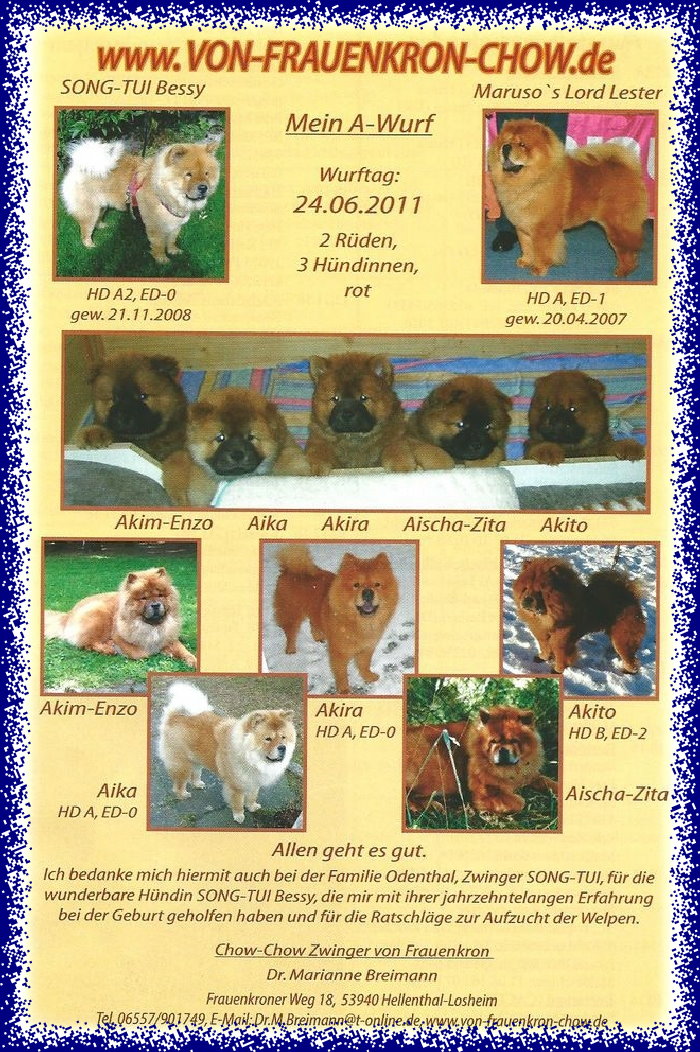 Der Vater meiner Welpen ist Maruso's Lord Lester. Er lebt im Zwinger "von Bellingroth" der Familie Schultz. HD: A - ED: 1 Er ist ein sehr erfolgreicher Deckrüde.