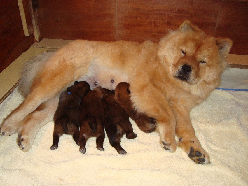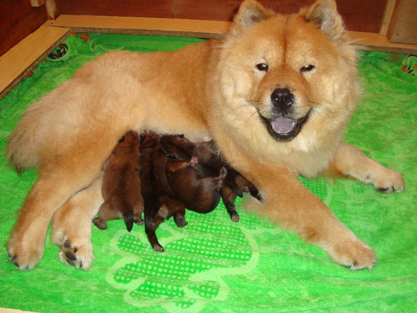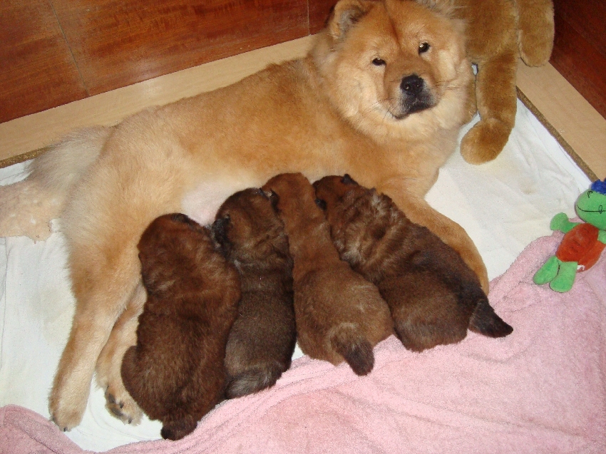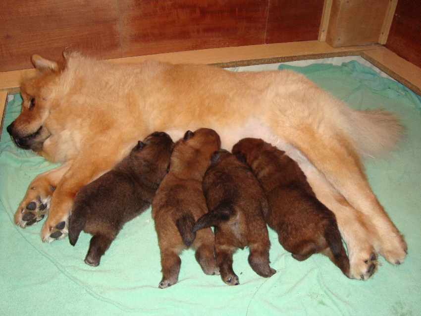 Großmutter Wunja & Welpen am 24.3.2011 im Alter von 6 Wochen