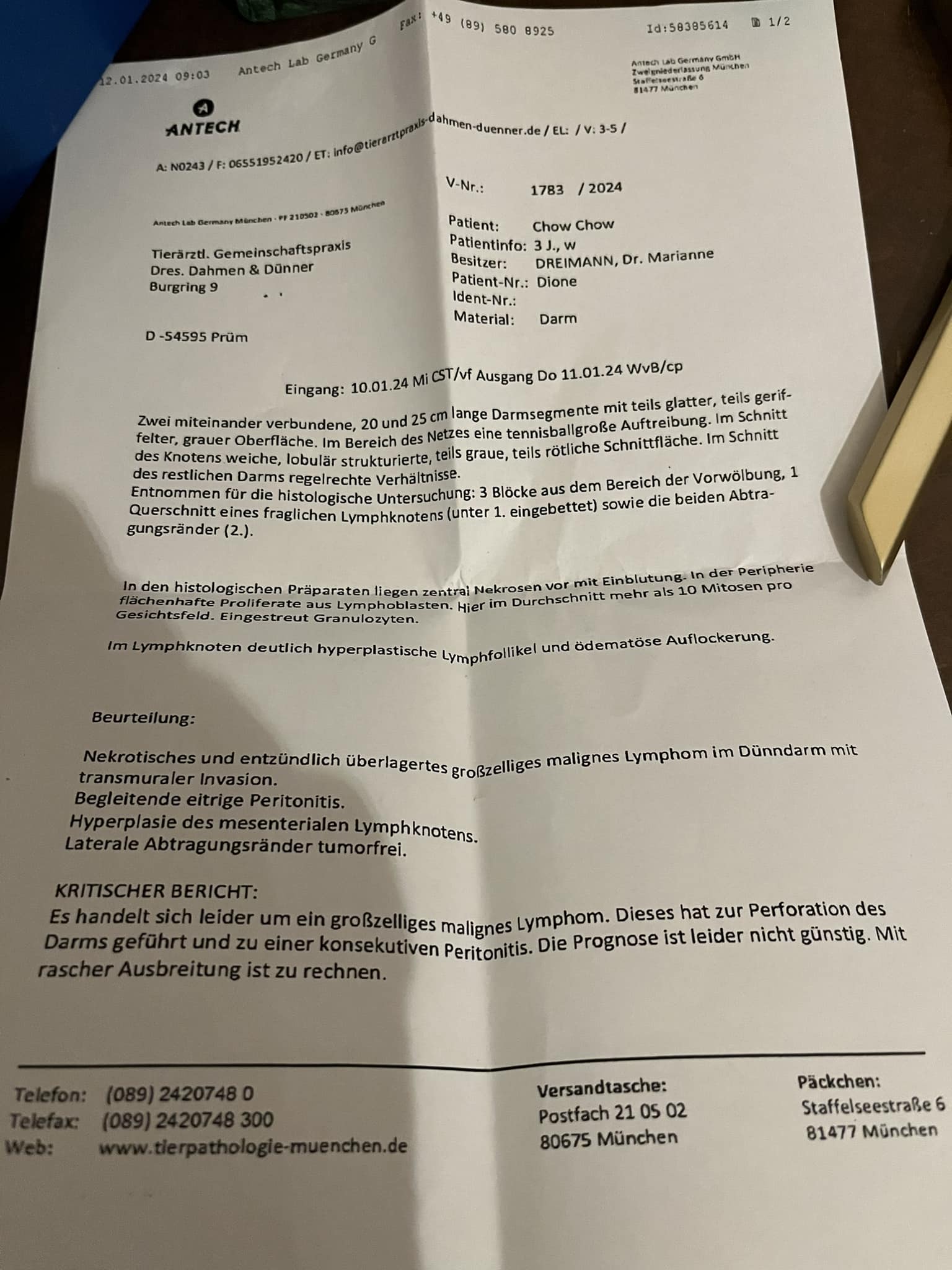 Im Ultraschall wurden zahlreiche Embryonen nachgewiesen, aber nicht mehr intakt und eine Gebärmutterentzündung wurde entdeckt.